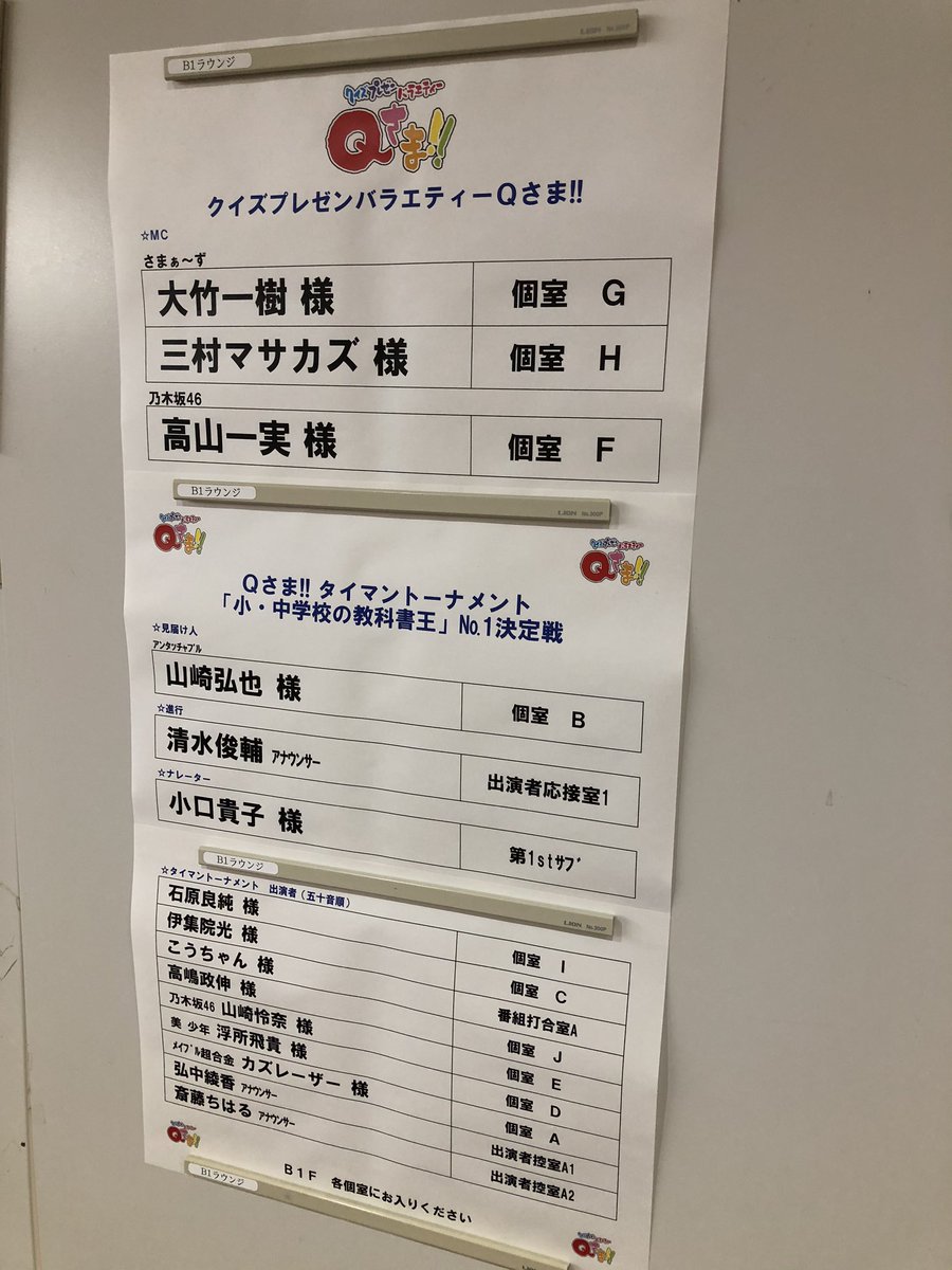 いや、Qさま!!のスタジオ収録がおわりまして今日という一日がおしまい。安全にやりました。