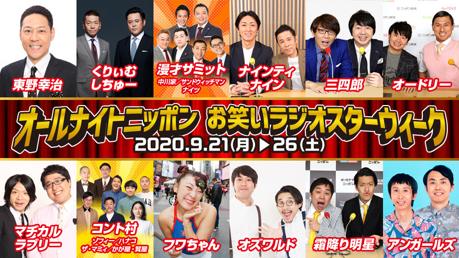 2年ぶりの開催! 1週間全番組をお笑い芸人が担当 『オールナイトニッポン お笑いラジオスターウィーク』