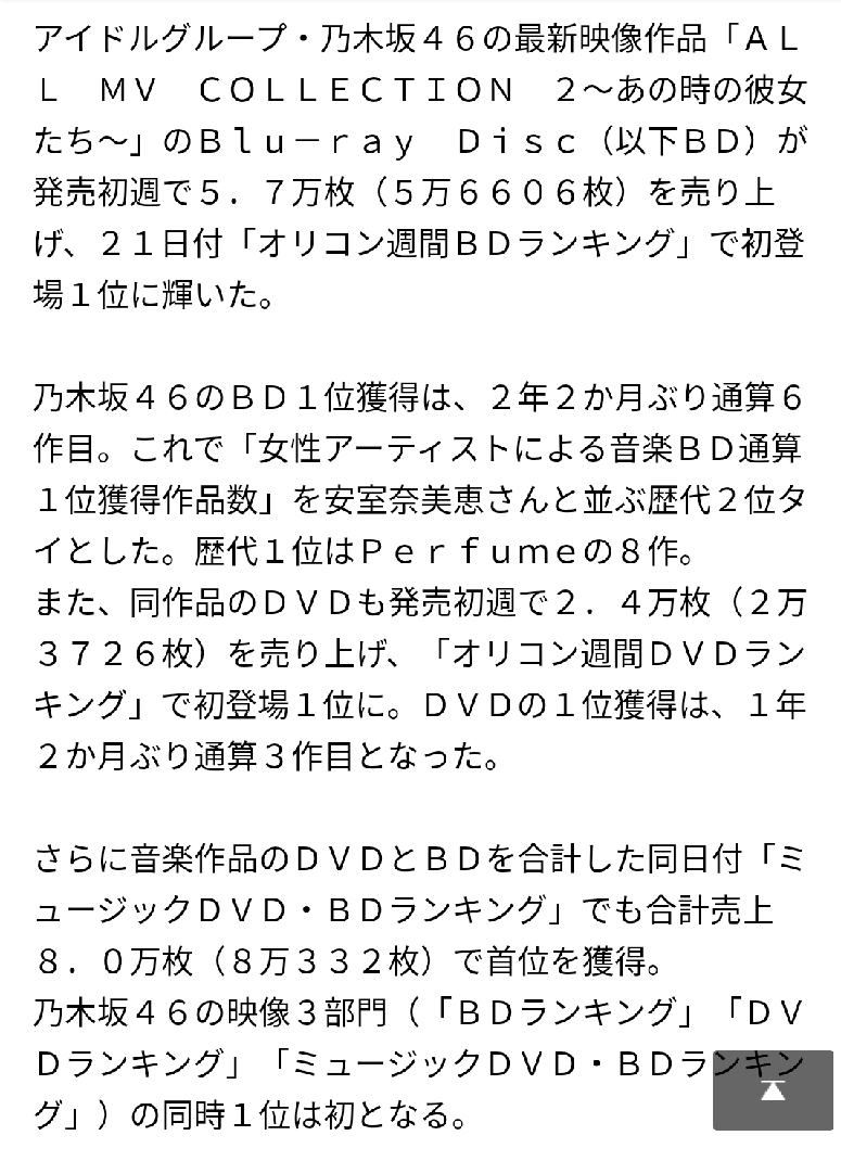 【乃木坂46】ALL MV COLLECTION2 3部門同時1位!『オリコン週間ランキング』前回より上回れてよかった
